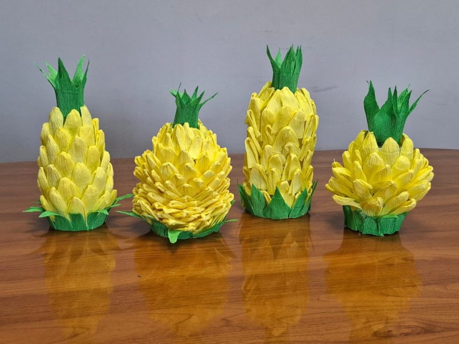 Получатели социальных услуг культурно -досугового отделения Икрянинского комплексного центра приняли участие в мастер-классе по изготовлению поделки из гофрированной бумаги. Руководитель студии рукоделия «Самоделкин» показала, как легко и просто гофрированную бумагу, и пластиковую бутылку можно превратить в красивый и реалистичный ананас.