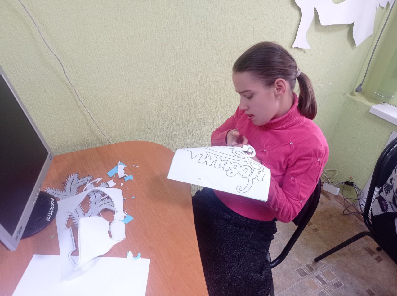 Вытынанки – вид народного искусства, резные узоры из бумаги, которые используют для украшения окон. С помощью ножниц и бумаги участники мастерили чудесные изделия, которыми украсили окна кабинета. Получилось очень волшебно и красиво.