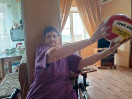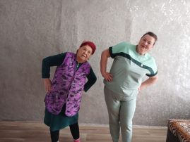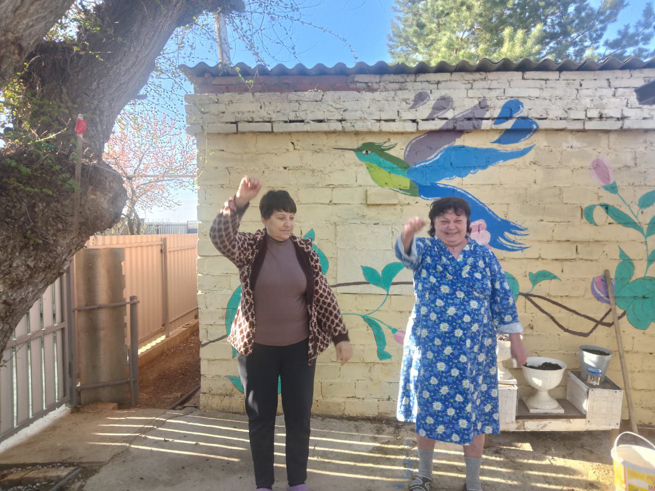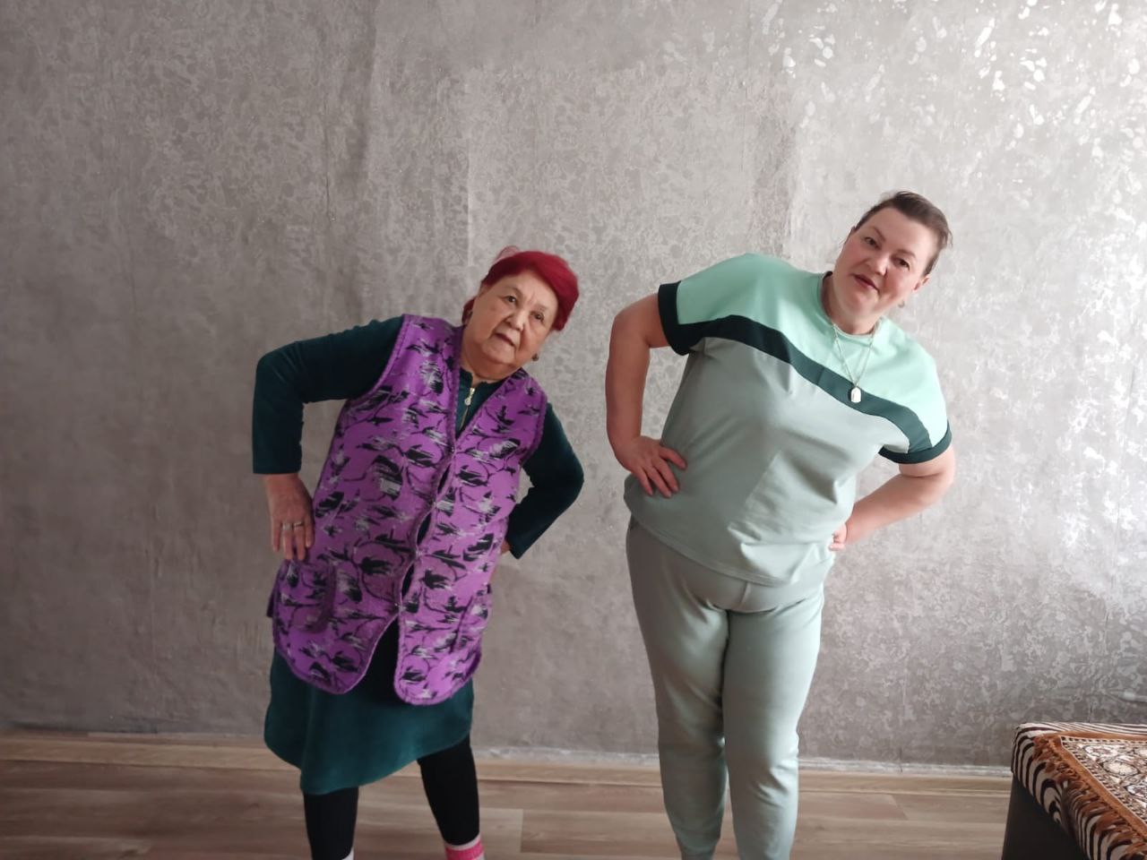 Даже простые движения — встать, сесть, потянуться, сжать руки, походить, наклониться, повернуть голову — важны для того, чтобы отвлечься от малоподвижного занятия. От таких упражнений получатели социальных услуг получают заряд бодрости и позитива.
