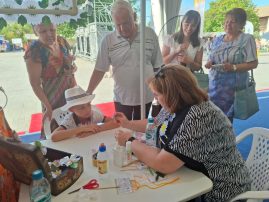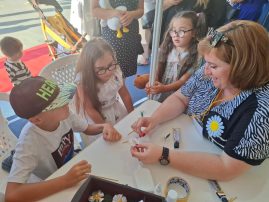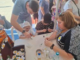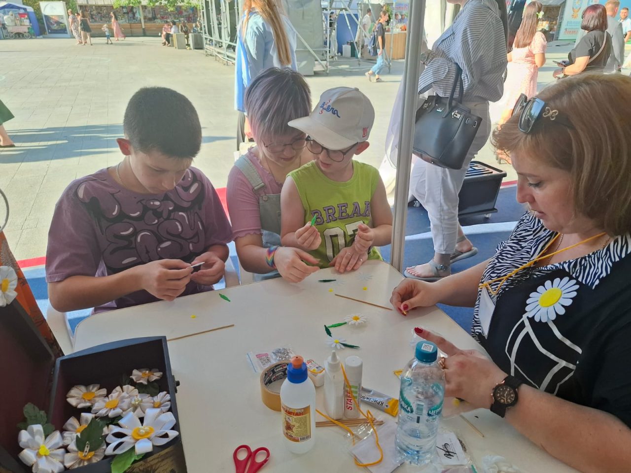 Икрянинский комплексный центр принял участие в социальной ярмарке, на которой представил лучшие творческие работы получателей социальных услуг: картины из бисера, алмазной мозаики, роспись по стеклу, картины в технике изонить, корзины с цветами из лент и гипса. Большим спросом пользовались ободки и броши с ромашками, сделанные руками получателями социальных услуг. Дети и родители с удовольствием приняли участие в мастер — классе по изготовлению брошки-ромашки из фетра, который оставил массу положительных эмоций и незабываемых впечатлений. Особой популярностью пользовалась фотозона «Ромашковое счастье», на фоне которой желающие смогли сделать фотографию на память.