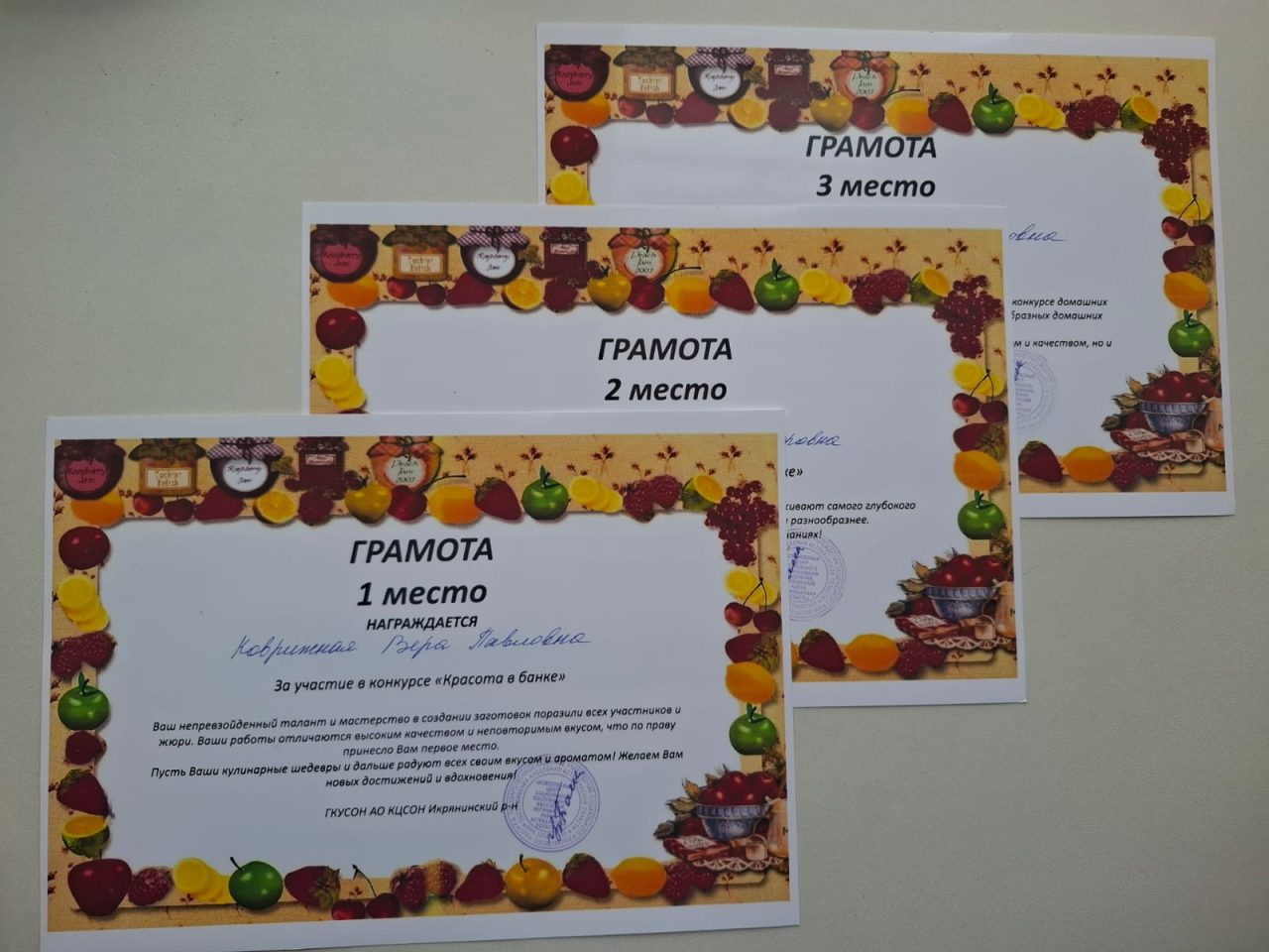 Специалисты культурно-досуговой деятельности Икрянинского комплексного центра, провели для получателей социальных услуг онлайн-конкурс «Красота в банке». В нем участники поделились своими коронными рецептами солений, салатов и компотов. По итогам конкурса определились три победителя, которым вручили грамоты за непревзойденный талант и мастерство в создании разнообразных домашних заготовок.