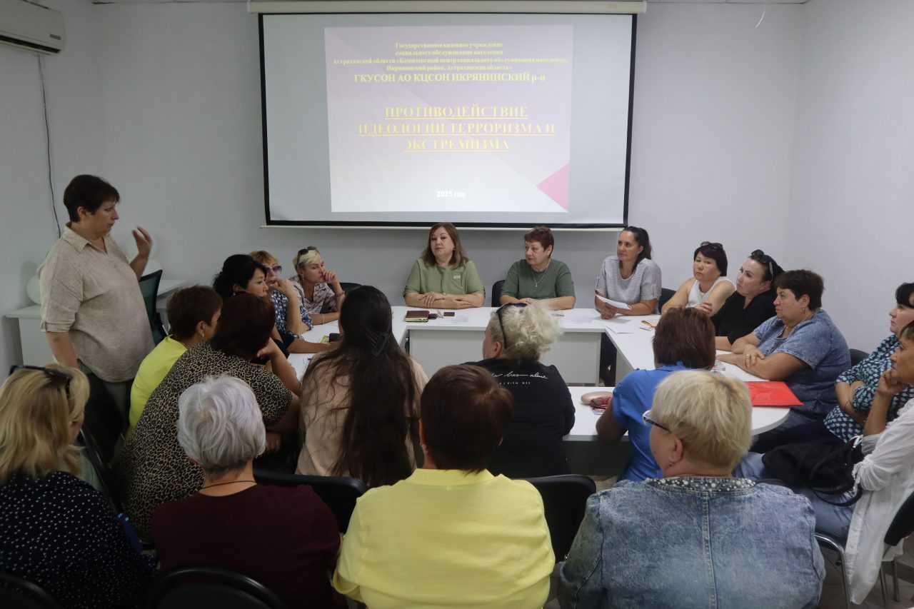 В рамках проведения информационно-просветительской компании, направленной на противодействие идеологии терроризма и экстремизма, со специалистами комплексного центра проведена профилактическая беседа. Присутствующим напомнили о религиозном и националистическом терроризме, о том, как важно проявлять гражданскую бдительность, каким образом можно противодействовать терроризму и как уберечь себя и своих близких в случае возникновения террористической опасности.