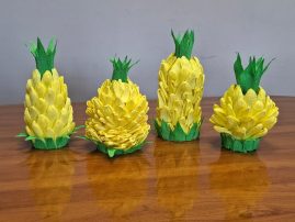 Ананас, изготовленный руками участницами мастер — класса можно использовать, как украшение интерьера комнаты, кухни и праздничного стола.