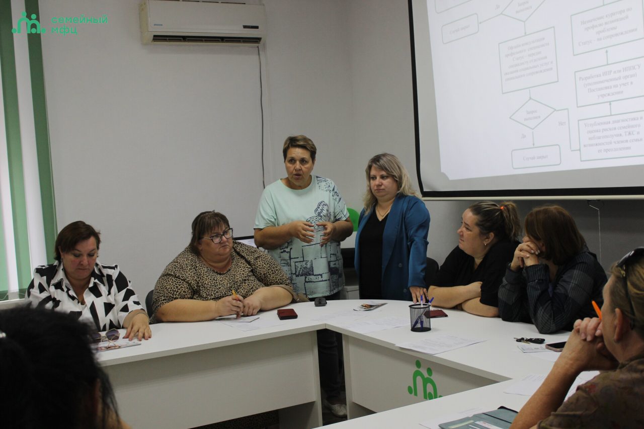 Первая встреча в рамках клубной работы носила ознакомительный характер. Заведующий отделением «Семейный МФЦ» Наталья Стукалова в начале встречи провела экскурсию, где гости смогли ознакомиться с основными направлениями работы, узнать о представляемых услугах и программах, направленных на помощь семьям в различных жизненных ситуациях. Она рассказала об особенностях программы клуба и порядке ее проведения. Отметила, что главное, чтобы семья вовремя обращалась за помощью к специалистам, и тогда многие проблемы можно предотвратить.