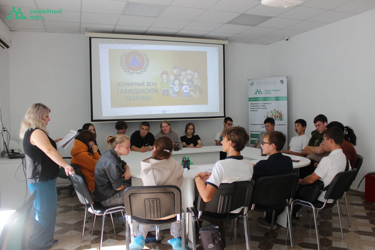 Специалисты отделения «Семейный МФЦ» провели с ребятами квест – игру «Школа Выживания 2025», которая включала в себя как теоретическую, так и практическую часть: решение тематических задач и головоломок, оказание первой помощи пострадавшим. Участники мероприятия узнали о создании гражданской обороны, ее роли и задачах, выполняемых в настоящее время, о правилах поведения в экстремальных и опасных ситуациях. Подростки познакомились со средствами пожаротушения и индивидуальной защиты, правилами эвакуации и о необходимости соблюдения общих правил безопасности.