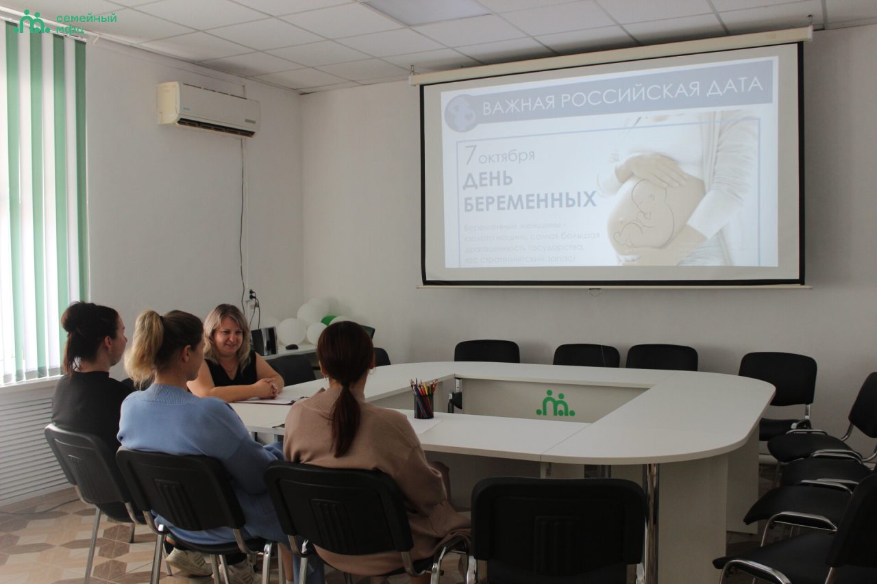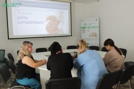 Заведующий отделением «Семейный МФЦ» Наталья Стукалова провела для будущих мам психологический тренинг «Радость материнства», на котором участницы мероприятия получили позитивные установки на благоприятное течение беременности, обучились навыкам саморефлексии, самопонимания, приобрели уверенность в своем будущем и будущем ребенка. Она рассказала женщинам о деятельности отделения «Семейный МФЦ» и раздала информационные буклеты.