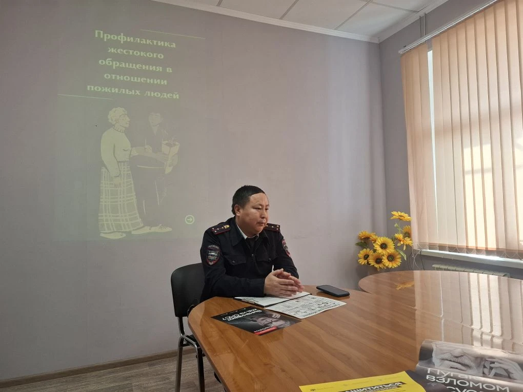 Старший участковый уполномоченный полиции ОМВД России по Икрянинскому району на встрече с получателями социальных услуг отделения культурно-досуговой деятельности провёл информационно-разъяснительную работу по профилактике жестокого обращения в отношении пожилых людей.